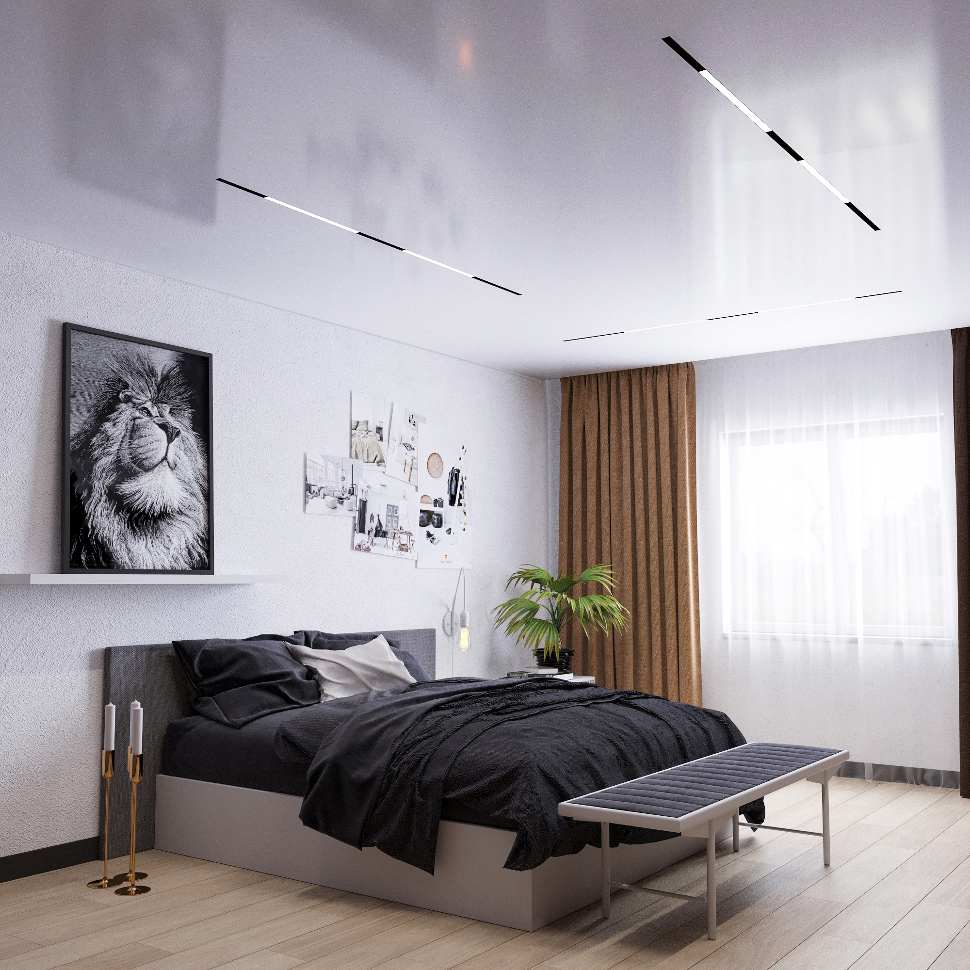 Глянцевые потолки с трековой системой идеально подходят для гостиной, кухни, спальни или офиса, придавая помещению современный и стильный вид. Трековая система освещения обеспечивает гибкость в управлении светом, позволяя легко адаптировать освещение под различные задачи – от яркого общего света до мягкой подсветки для создания уюта.