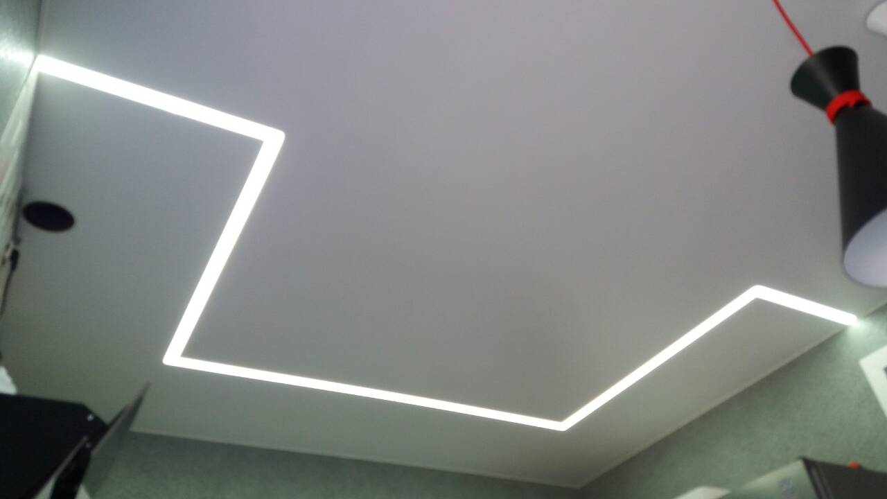 Матовый натяжной потолок с парящими линиями в кухню Наша работа 141