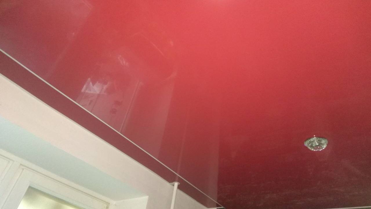 Глянцевый натяжной потолок с точечными светильниками в комнату Наша работа 64
