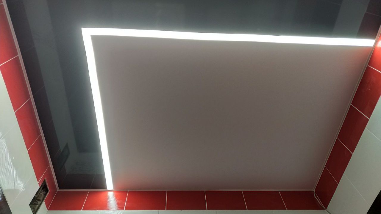 Натяжной потолок со световыми линиями в ванную комнату Наша работа 96