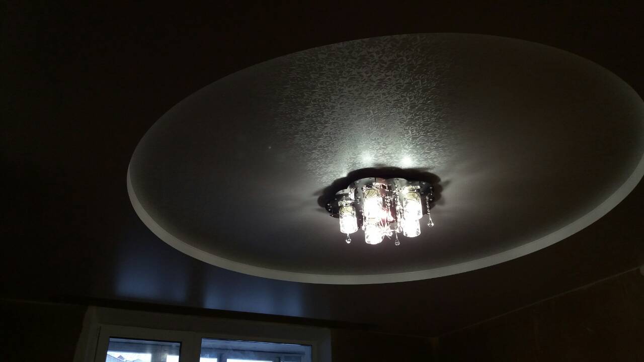Натяжной потолок двухуровневый с люстрой в комнату Наша работа 99